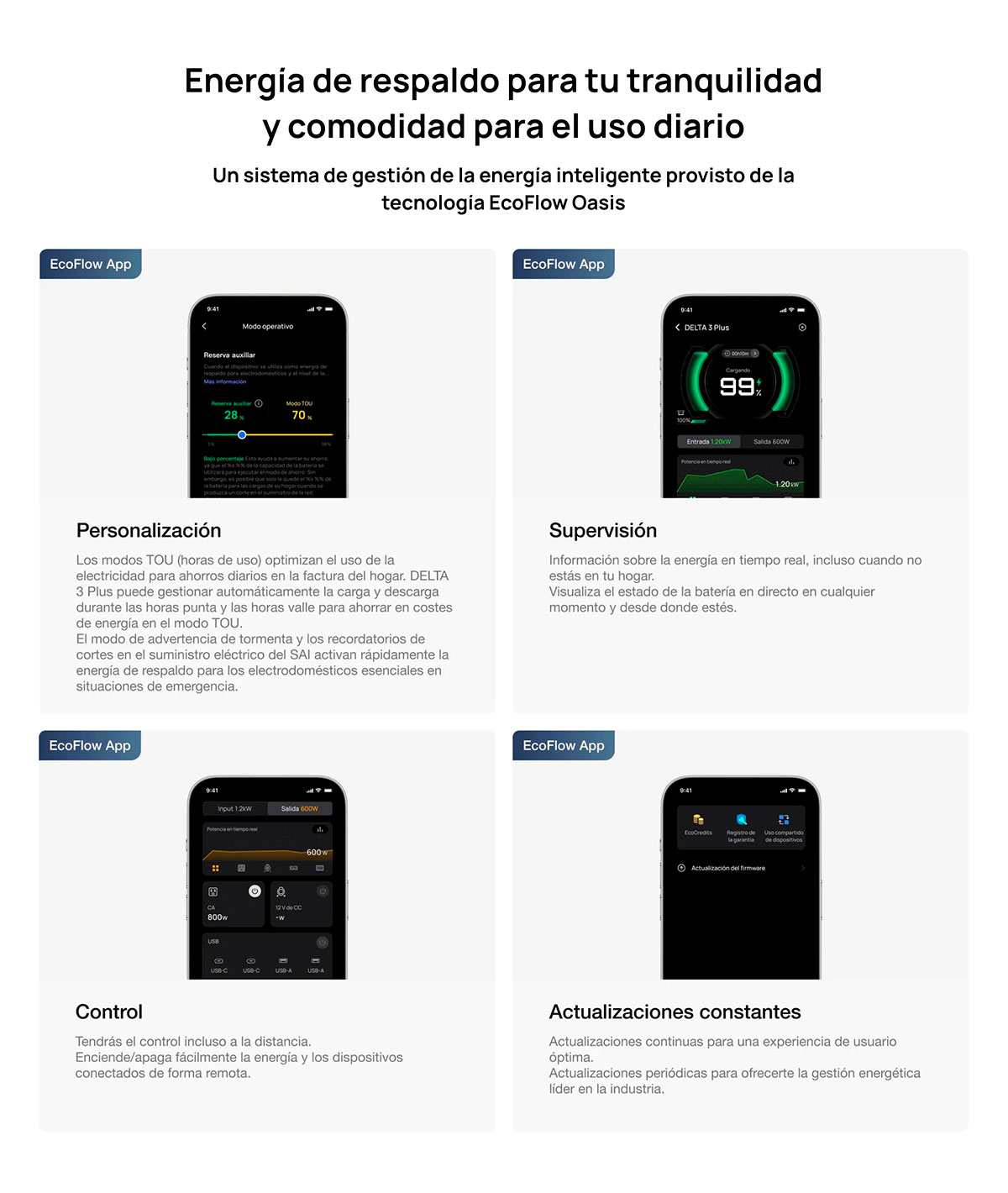 Ofrece una salida de CA de 1800 W y 5 métodos de recarga rápida, incluida carga solar y generador inteligente de doble combustible.